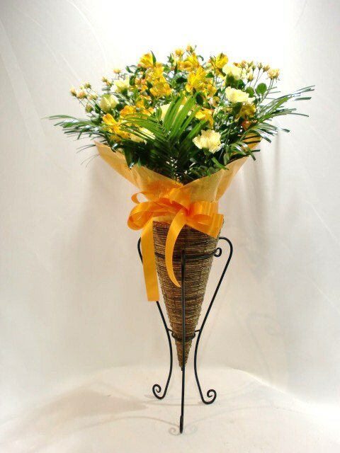 スタンド付きアレンジメント。 開店、誕生日などお祝い、インテリア、ビジネス使用にもどうぞ。 法人様には領収書の発行が可能です。 送料無料 色が選べる フラワースタンド花 (ミディアムコーン) 季節のお