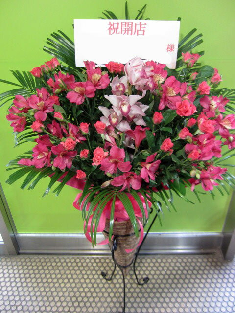最短出荷日 午後3時までのご注文で即日発送。 日付・時間指定 日付指定可・時間指定可。備考欄でご選択ください。 用途 開店祝、開業祝、移転祝い、公演祝い、イベント、誕生日祝い、楽屋見舞い、発表会、展示会、ビジネス 使用花材 メイン 季節のお花 その他 お届け内容 アレンジメント サイズ 奥行約50cm x 幅約70cm x 高さ約110cm ラッピング ミディアムスタンド、オアシス入り。 スタンドとお花は別に梱包してお送りします。 メッセージカード 無料。ご希望のメッセージを「注文画面STEP3」の備考欄にご入力ください その他 花助指定地域限定商品。送料無料。 店長コメント